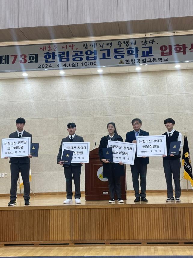 À̳¯ Çà»ç¿¡¼´Â ÇѸ²°ø¾÷°íµîÇб³ Ãѵ¿Ã¢È¸¿¡¼ Çб³¹ßÀü¿¡ À̹ÙÁöÇÏ´Â Çлý¿¡°Ô ÀåÇÐ Áõ¼¿Í 100¸¸ ¿øÀÇ ÀåÇбÝÀ» ¼ö¿©ÇßÀ¸¸ç, ¿ì¼öÇÑ ¼ºÀûÀ¸·Î ÀÔÇÐÇÑ Çлý 1¸í¿¡°Ô ÇѸíȸ ÀåÇÐ±Ý 100¸¸ ¿ø°ú ÀåÇÐ Áõ¼¸¦, 4¸í¿¡°Ô ¢ßÇѶó»ê ÀåÇÐ±Ý °¢ 50¸¸ ¿ø°ú ÀåÇÐ Áõ¼¸¦ ¼ö¿©Çß´Ù.