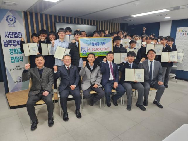 [½Ã»çÁ¾ÇսŹ® = °í¼º¹Î ±âÀÚ] ³²ÁÖ°íµîÇб³ Ãѵ¿Ã¢È¸¿Í (»ç)³²ÁÖÀåÇÐȸ°¡ Áö³ 4ÀÏ ³²ÁÖ°íµîÇб³(±³Àå °¿µÃ¶)¸¦ ¹æ¹®ÇÏ¿© ÀåÇÐ±Ý Àü´Þ Çà»ç¸¦ ÁøÇàÇÏ¿´´Ù. ¾çâ¿î Ãѵ¿Ã¢È¸Àå°ú °í¿Õ°æ (»ç)³²ÁÖÀåÇÐȸ ÀÌ»çÀåÀÌ ÀÌ Çà»ç¿¡ Âü¿©ÇÏ¿© 30¿© ¸íÀÇ Çлý¿¡°Ô ÀåÇÐ±Ý 3,000¸¸ ¿øÀ» Àü´ÞÇÏ¿´´Ù.