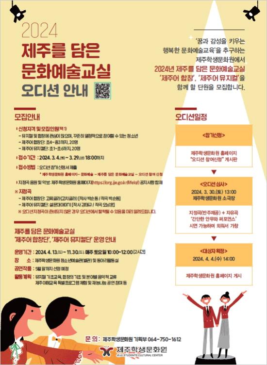 À̹ø ¿Àµð¼ÇÀº Á¦ÁÖ¾î ÇÕâ°ú Á¦ÁÖ¾î ¹ÂÁöÄà ´Ü¿øÀ» ¼±¹ßÇÏ´Â °ÍÀ¸·Î ÇÕâ´ÜÀº µµ³» ÃʵîÇб³ 4Çгâ ~ ÁßÇб³ 3Çгâ±îÁö, ¹ÂÁöÄôÜÀº µµ³» ÃʵîÇб³ 1~6Çгâ±îÁö ´©±¸³ª Áö¿øÇÒ ¼ö ÀÖÀ¸¸ç 3¿ù 29ÀÏ(±Ý) ¿ÀÈÄ 6½Ã±îÁö Âü°¡ ½Åû ÈÄ, 3¿ù 30ÀÏ(Åä) ½É»ç¸¦ °ÅÃÄ ´ë»óÀÚ¸¦ È®Á¤ÇÒ °èȹÀÌ´Ù. ½É»ç °á°ú´Â 4¿ù 3ÀÏ(¼ö) ¿ÀÈÄ 2½Ã¿¡ Á¦ÁÖÇлý¹®È¿ø ȨÆäÀÌÁö¸¦ ÅëÇØ °ø°³ÇÑ´Ù.