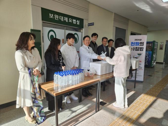 û¾Ï´ëÇб³¡®Ãµ¿øÀÇ ¾ÆÄ§¹ä¡¯Àº »ç¾÷ ½ÃÇà ù³¯ÀÎ 3¿ù 11ÀÏ ±è¼ºÈ« ÃÑÀåÁ÷¹«´ëÇà°ú ±èÁؼº ÃÑÇлýȸÀåÀº Çлýµé¿¡°Ô Á÷Á¢ ¾ÆÄ§½Ä»ç¸¦ ¹è½ÄÇÏ¸ç °Ý·Á¿¡ ³ª¼¹´Ù.