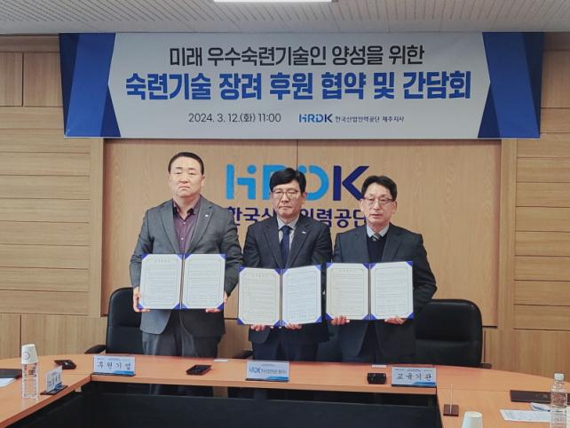 À̳¯ Çù¾à½Ä¿¡´Â ±¤´öÀü·Â(ÁÖ) °íÀ±¼® ´ëÇ¥¿Í Çѱ¹»ê¾÷Àη°ø´Ü Á¦ÁÖÁö»ç(Áö»çÀå ¾ç´ëÇü) µî ±â´É°æ±â´ëȸ ÃâÀü Çб³ ¹× °ü°èÀÚ°¡ Âü¿©ÇÏ¿´À¸¸ç ¼÷·Ã ±â¼ú Àå·Á¸¦ À§ÇÑ ¾÷¹«Çù¾àÀ» ü°áÇϰí ÈÄ¿ø±ÝÀ» Àü´Þ¹Þ¾Ò´Ù.