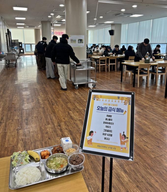 ±¹¸³¼øÃµ´ë´Â Çбâ Áß¿¡(°øÈÞÀÏ Á¦¿Ü) ¸ÅÁÖ ¿ù~¸ñ¿äÀÏ ¿ÀÀü 8½Ã~9½Ã, ÇÏ·ç 100¸íÀÇ ÀçÇлý¿¡°Ô ¾ÆÄ§ ½Ä»ç¸¦ Á¦°øÇÑ´Ù. ´ëÇÐÀº ¼±È£µµ Á¶»ç¸¦ ½ÃÇàÇÏ´Â µî ÀÇ°ß ¼ö·ÅÀ» ÅëÇØ ÇлýµéÀÇ ÀÌ¿ë ¸¸Á·µµ¸¦ Çâ»óÇÒ ¼ö ÀÖ´Â ´Ù¾çÇÑ ¿î¿µ ¹æ¾ÈÀ» ¸¶·ÃÇÒ °èȹÀÌ´Ù.