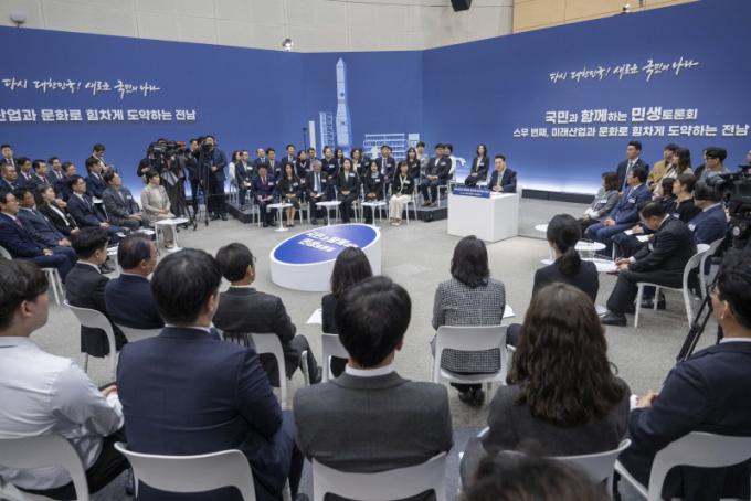 ¿À´Ã Åä·Ðȸ´Â ¹Ì·¡»ê¾÷ °ü·Ã ±â¾÷ÀÎ, Çкθð, Áö¿ªÁֹΠµî 100¿©¸íÀÌ Âü¼®ÇßÀ¸¸ç, ¿ìµ¿±â Áö¹æ½Ã´ëÀ§¿øÀå, ±è¿µ·Ï Àü³²µµÁö»ç µîÀÌ Âü¼®ÇÏ¿© Àü³²ÀÇ ¹ßÀü¹æÇâ°ú ¹Ì·¡»ê¾÷, ÀÎÇÁ¶ó¿¡ ´ëÇØ ½Éµµ ÀÖ´Â Åä·ÐÀ» ÁøÇàÇÏ¿´´Ù.