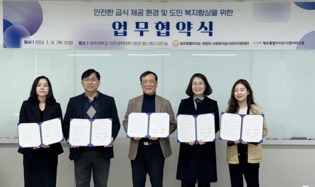 [½Ã»çÁ¾ÇսŹ® = °í¼º¹Î ±âÀÚ] Á¦ÁÖ´ëÇб³ »êÇÐÇù·Â´ÜÀÌ À§Å¹¿î¿µÇϰí ÀÖ´Â Á¦ÁÖÆ¯º°ÀÚÄ¡µµ ¾î¸°ÀÌ¡¤»çȸº¹Áö±Þ½Ä°ü¸®Áö¿ø¼¾ÅÍ(Á¦ÁÖ1¼¾ÅÍÀå äÀμ÷, Á¦ÁÖ2¼¾ÅÍÀå ÇϰæÈ£, Á¦ÁÖ3¼¾ÅÍÀå ¹Ú¼º¼ö, Á¦ÁÖ4¼¾ÅÍÀå ÀÌÀ±°æ)´Â Á¦ÁÖÆ¯º°ÀÚÄ¡µµ»çȸ¼ºñ½º¿ø(¿øÀå ¹®¿øÀÏ)°ú Áö³ 14ÀÏ Á¦ÁÖ´ëÇб³ ÀÚ¿¬°úÇдëÇÐ 1È£°ü¿¡¼ ¡®¾ÈÀüÇÑ ±Þ½Ä Á¦°ø ȯ°æ ¹× µµ¹Î º¹ÁöÇâ»ó¡¯À» À§ÇÑ ¾÷¹«Çù¾àÀ» ü°áÇß´Ù.