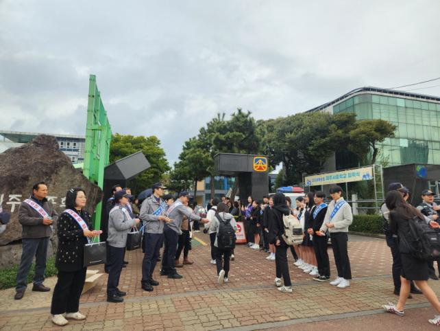 Ä·ÆäÀÎ Âü¿©ÀÚµéÀº ÇлýµéÀÇ µî±·±æ ÀÀ¿øÀÇ ¸Þ½ÃÁö¿Í ÇÔ²² Áö¿ø ¹°Ç°À» Àü´ÞÇϰí Çб³Æø·Â ¹× û¼Ò³â ¹üÁË ±ÙÀýÀ» À§ÇÑ È«º¸ Ȱµ¿À» Àü°³ÇÏ¿´´Ù.