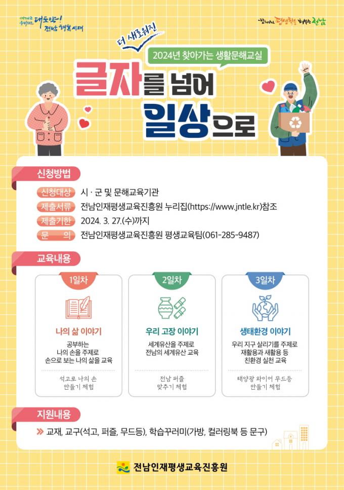 ƯÈ÷ ¿ÃÇØºÎÅÍ´Â ¹®ÇØÇнÀÀÇ ±³À° ÄÜÅÙÃ÷ ´Ù¾çȸ¦ À§ÇØ ½Å±Ô ÇÁ·Î±×·¥À» ¿î¿µÇÑ´Ù. ±³À° ÁÖÁ¦´Â ¡ã³ªÀÇ »î À̾߱⠡ã¿ì¸® °íÀå À̾߱⠡ã»ýÅÂȯ°æ À̾߱â·Î ±¸¼ºµÅ ¼ÕÀ¸·Î º¸´Â ³ªÀÇ »î, Àü³²ÀÇ ¼¼°èÀ¯»ê, ģȯ°æ ½Çõ ±³À° µî ¹®ÇØ ÇнÀÀÚÀÇ ±âÃÊ »ýȰ ´É·Â±³À°À» Áö¿øÇÑ´Ù. ¶ÇÇÑ ¹®ÇØÇнÀÀÚÀÇ ÇнÀ¿¡ ÇÊ¿äÇÑ ¹®±¸·ù, ±³Àç, ±³±¸, Ä÷¯¸µºÏ µî ÇнÀ²Ù·¯¹Ì¸¦ Á¦ÀÛÇØ Áö±ÞÇÑ´Ù.