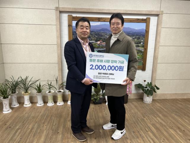[½Ã»çÁ¾ÇսŹ® = °í¼º¹Î ±âÀÚ] Á¦ÁÖÁß¾Ó°íµîÇб³(±³Àå ¾È°æÈ£)´Â Áö³ 19ÀÏ ¹Ú¿ëÇù Àü Á¦ÁÖµµÃ౸Çùȸ ºÎȸÀåÀ¸·ÎºÎÅÍ Áß¾Ó°í ¹éÈ£±â Ã౸´ëȸ¿Í ÀÀ¿ø ¹®ÈÀÇ ¹ßÀüÀ» ±â¿øÇϸç ÈÄ¿ø±Ý 200¸¸ ¿øÀ» Àü´Þ¹Þ¾Ò´Ù.
