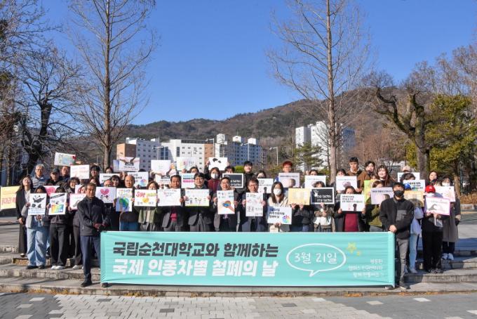 Ä·ÆäÀο¡ Âü¿©ÇÑ ´ëÇÐ ±¸¼º¿øµéÀº Ä£±¸¿Í °¡Á·°ú ÇÔ²² ¡®´©±¸³ª ÀÎÁ¾ÀÌ ´Ù¸£´Ù´Â ÀÌÀ¯·Î Â÷º°¹ÞÁö ¾ÊÀ» Çå¹ýÀû ±Ç¸®¡¯¸¦ ³ì¿©³½ ¼ÕÆÖ¸»À» Á÷Á¢ Á¦ÀÛÇϰí, µî±·±æ¿¡ ¼±ÀüÇÏ´Â ÆÛÆ÷¸Õ½º¸¦ ÆîÃÆ´Ù. À̳¯ Çà»ç¿¡´Â À̺´¿î ÃÑÀåÀ» ºñ·ÔÇÑ ÁÖ¿ä º¸Á÷ÀÚ¿Í ±³Á÷¿ø, ³»¡¤¿Ü±¹ÀÎ ÀçÇлý µî 50¿© ¸íÀÌ ³Ñ´Â ÀοøÀÌ ´Éµ¿ÀûÀ¸·Î Âü¿©ÇØ ÀÎÁ¾Â÷º° ±ÙÀý ¸ñ¼Ò¸®¸¦ ³ô¿´´Ù.
