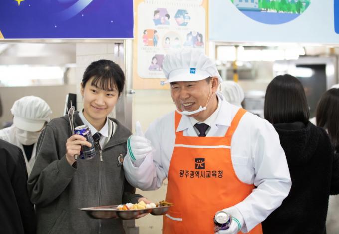 [½Ã»çÁ¾ÇսŹ® = ±è¿¬Èñ ±âÀÚ] ÀÌÁ¤¼± ±³À°°¨ÀÌ 22ÀÏ ¡®Çб³±Þ½Ä ±Û·Î¹úDAY¡¯(ÀÌÇÏ ±Û·Î¹úDAY) ù ½Ç½Ã¸¦ ¸Â¾Æ ¿î¿µÇб³ Áß ÇϳªÀÎ ±¤ÁÖ°æ½Å¿©ÀÚ°íµîÇб³¸¦ ¹æ¹®ÇØ ¹è½ÄºÀ»ç¸¦ Çϰí Çлýµé°ú ÇÔ²² ¼¼°è À½½Ä ¹®È¸¦ üÇèÇÏ´Â ½Ã°£À» °¡Á³´Ù.