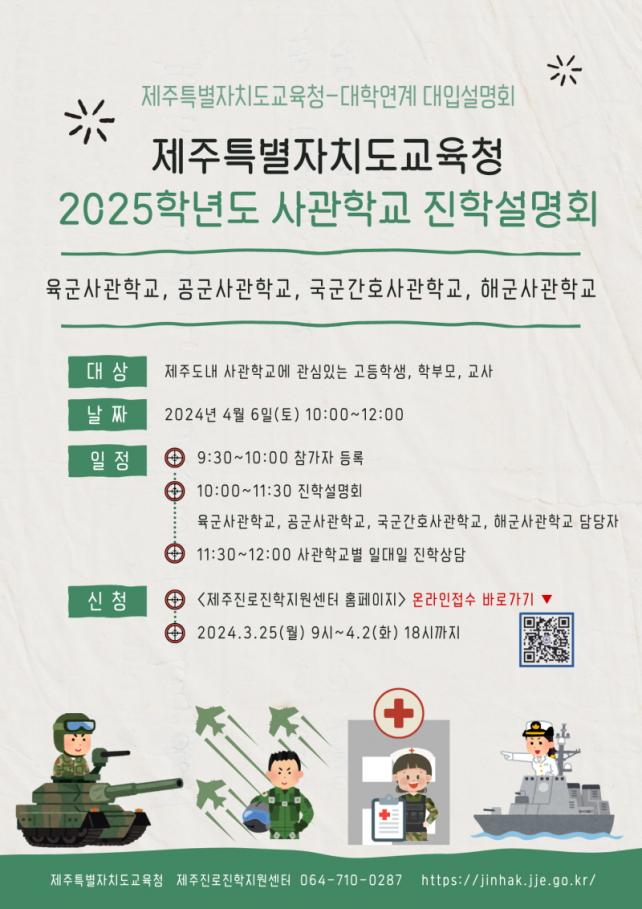 À̹ø ¼³¸íȸ´Â 6¿ù Áß¼øºÎÅÍ ¿ø¼Á¢¼ö°¡ ½ÃÀ۵Ǵ »ç°üÇб³(À°±º»ç°üÇб³, °ø±º»ç°üÇб³, ±¹±º°£È£»ç°üÇб³, ÇØ±º»ç°üÇб³)¸¦ ÃÊûÇÏ¿© »ç°üÇб³º° 2025Çг⵵ ÀÔÇÐÀüÇü¿¡ ´ëÇÑ ¾È³»¿Í °¢ »ç°üÇб³ ´ã´çÀÚ°¡ ÁøÇàÇÏ´Â ÀÏ´ëÀÏ ÁøÇÐ »ó´ãÀ» ÅëÇØ Áø·Î ¹æÇâÀ» Ž»öÇÒ ¼ö ÀÖ´Â ½Ã°£À» Á¦°øÇÒ ¿¹Á¤ÀÌ´Ù.