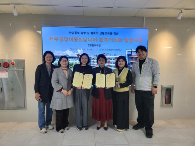 [½Ã»çÁ¾ÇսŹ® = °í¼º¹Î ±âÀÚ] Á¦ÁÖÁß¾Ó¿©ÀÚÁßÇб³(±³Àå ¼Èñ¼ø)´Â Áö³ 3ÀÏ ´ã³Ê¸Óȸº¹ÀûÁ¤ÀÇÇùµ¿Á¶ÇÕ°ú Çб³Æø·Â ¿¹¹æ ¹× ÇлýµéÀÇ °¥µî »óȲ ÁßÀç Áö¿øÀ» À§ÇÑ ¾÷¹« Çù¾à½ÄÀ» ½Ç½ÃÇß´Ù.