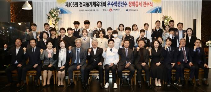 Àü³²±³À°Ã» ¼±¼ö´ÜÀº Áö³ 2¿ù °¿øÆ¯º°ÀÚÄ¡µµ ÀÏ¿ø¿¡¼ ¿¸°¡®Á¦15ȸ Àü±¹µ¿°èüÀ°´ëȸ¡¯¿¡¼ ±Ý 12°³, Àº 7°³, µ¿ 8°³¸¦ ȹµæÇÏ¸ç ¿ª´ë ÃÖ°í ¼ºÀûÀ» °ÅµÐ ¹Ù ÀÖ´Ù. À̳¯ Àü¼ö½Ä¿¡¼´Â À̹ø Àü±¹µ¿°èüÀ°´ëȸ¿¡¼ ÀÔ»óÇÑ ¿ì¼öÇлý 18¸í¿¡°Ô ÀåÇÐÁõ¼¸¦ ¼ö¿©Çß´Ù.