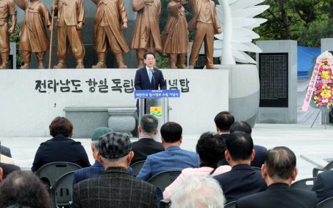 ±è¿µ·Ï Áö»ç´Â ±â³ä»ç¿¡¼ ¡°´ëÇѹα¹ ÀÓ½ÃÁ¤ºÎ´Â ´ëÇѵ¶¸³ÀÇ Á¤´ç¼ºÀ» ¼¼°è¿¡ ³Î¸® ¾Ë¸®°í Ç×ÀϹ«ÀåÅõÀïÀ» Ȱ¹ßÇÏ°Ô ÆîÄ¡´Â µî ±¤º¹Çϱâ±îÁö µ¶¸³¿îµ¿ÀÇ µçµçÇÑ ±¸½ÉÁ¡À̾ú´Ù¡±¸ç ¡°¾ÕÀ¸·Îµµ ¡®ÀÇÇâÀü³²¡¯ÀÇ Á¤½ÅÀ» °è½Â ¹ßÀü½ÃŰ°í µ¶¸³ À¯°øÀÚ¿¡ ´ëÇÑ ¼±¾ç°ú º¸ÈÆ¿¡ ´õ¿í Èû¾²°Ú´Ù¡±°í ¸»Çß´Ù.