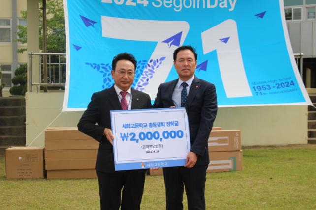 ÀÌ´Â Á¦15ȸ °³±³ 71Áֳ⠱â³ä ¡®¼¼°íÀÎ ÇѸ¶À½ üÀ°´ëȸ¡¯¸¦ °³ÃÖÇÏ¸é¼ Çб³¹ßÀüÀ» À§ÇØ ±âŹÇÑ °ÍÀ¸·Î ¼¼È°íµîÇб³ Ãѵ¿Ã¢È¸ ¹× Àç°æ¼¼È°íµîÇб³ Ãѵ¿¹®È¸¿¡¼´Â ¸Å³â Çб³¹ßÀü±â±ÝÀ¸·Î ÀåÇÐ±Ý µîÀ» Áö¿øÇϰí ÀÖ´Ù.