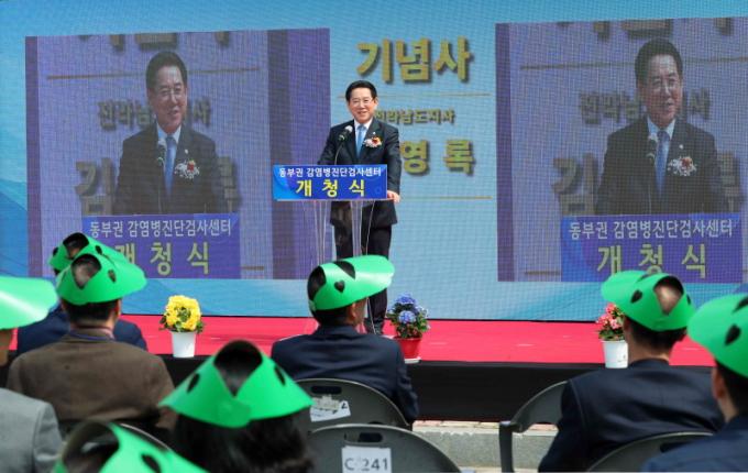 °³Ã»½Ä¿¡¼± ±è¿µ·Ï Àü³²µµÁö»ç, ¼µ¿¿í Àü³²µµÀÇȸ ÀÇÀå, ÀÌ»ó¿ø Áúº´°ü¸®Ã» °¨¿°º´Áø´ÜºÐ¼®±¹Àå µî 100¿© ¸íÀÌ Âü¼®ÇØ µ¿ºÎ±Ç °¨¿°º´Áø´Ü°Ë»ç¼¾ÅÍÀÇ ¼º°øÀû Ãâ¹ßÀ» ÃàÇÏÇϸç ÀÀ¿ø ¸Þ½ÃÁö¸¦ ÀüÇß´Ù.