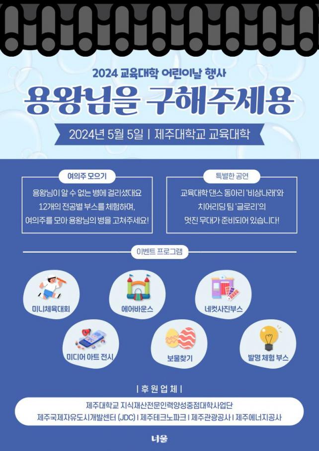 ÃàÁ¦ Áß°£¿¡´Â Á¦ÁÖ´ëÇб³ ±³À°´ëÇÐ µ¿¾Æ¸® ºñ»ó ³ª·¡ÀÇ ´í½º°ø¿¬, ¾î¸°ÀÌ Ä¡¾î¸®µù ÆÀ ±Û·Î¸®ÀÇ Ä¡¾î¸®µù °ø¿¬ ±×¸®°í ¾ÆÀ̵é°ú ºÎ¸ð´ÔÀÌ ÇÔ²² Âü¿©ÇÒ ¼ö ÀÖ´Â ¹Ì´Ï üÀ°´ëȸ°¡ ÁøÇàµÉ ¿¹Á¤ÀÌ´Ù.
