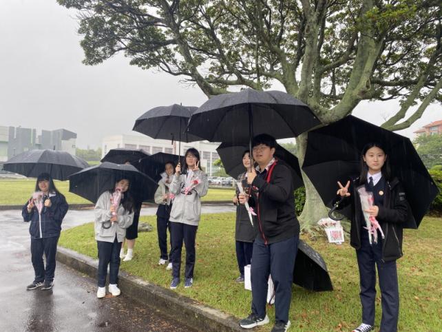µî±³ ½Ã°£¿¡ ¸ÂÃç ±³³» ½Ã°èž ¾Õ¿¡¼ û¼Ò³â ÆòÈ °ø°¨ ÇÁ·ÎÁ§Æ®ÆÀ 2Çгâ Çлý°ú ȯ°æÀμººÎ ¼±»ý´ÔµéÀÌ Çкθð´Ôµé²² Ä«³×À̼ǰú °¨»ç Àλ縦 ÀüÇÏ¿´´Ù.
