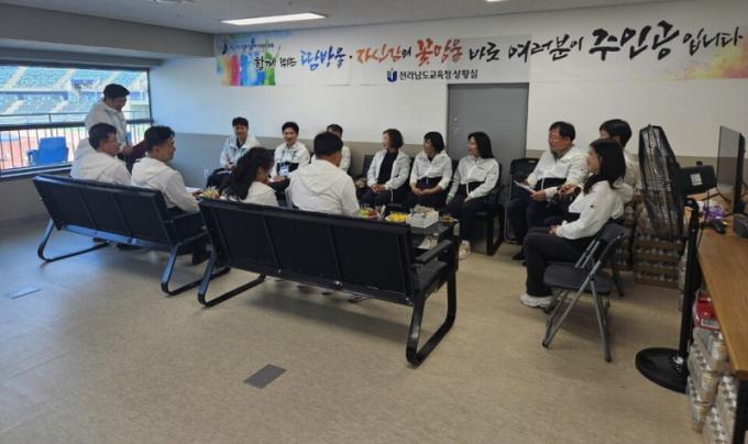 ±è´ëÁß ±³À°°¨Àº Áö³ 14ÀÏ Àü±¹Àå¾ÖÇлýüÀ°´ëȸ ù³¯ Àü³²¼±¼ö´ÜÀÌ °¡Àå ¸¹ÀÌ Âü°¡ÇÏ´Â e-½ºÆ÷Ã÷ °æ±âÀå(¸ñÆ÷´Ù¸ñÀûüÀ°°ü)À» ã¾Æ Ư¼öÇб³ ±³Àå´Ü°ú ÇÔ²² È¥¼ºFC¿Â¶óÀÎ °æ±â¸¦ Á÷Á¢ °ü¶÷ÇÏ¸ç ¼±¼ö´ÜÀ» ÀÀ¿øÇß´Ù. °æ±â °ü¶÷ ÈÄ ¸ñÆ÷Á¾ÇÕ°æ±âÀå Àü¶ó³²µµ±³À°Ã» »óȲ½ÇÀ» ã¾Æ ÀÓ¿øÁøµéÀ» °Ý·ÁÇÑ µÚ Àü³² Ư¼öÇб³ ±³Àå´Ü°ú °£´ãȸ¸¦ °®°í Çб³ ÇöÀåÀÇ Àå¾ÖüÀ° Çö¾È¿¡ ´ëÇÑ ÀǰßÀ» ³ª´³´Ù.