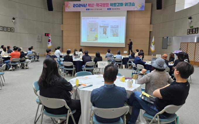 ¡®µû¶æÇÑ Àü³², ÇൿÇÏ´Â Àü³²¡¯À» ÁÖÁ¦·Î ¿¸° ¿öÅ©¼ó¿¡´Â ½Ã±º Çõ½Å¡¤Àû±ØÇàÁ¤ ´ã´ç °ø¹«¿ø°ú 2024³â Áö¿ªÇõ½Å °ø¸ð»ç¾÷¿¡ ¼±Á¤µÈ Áö¿ª°øµ¿Ã¼ ´ëÇ¥, Àû±ØÇàÁ¤ ÁֹΠ¸ð´ÏÅ͸µ´Ü µî 70¿© ¸íÀÌ Âü¼®Çß´Ù.