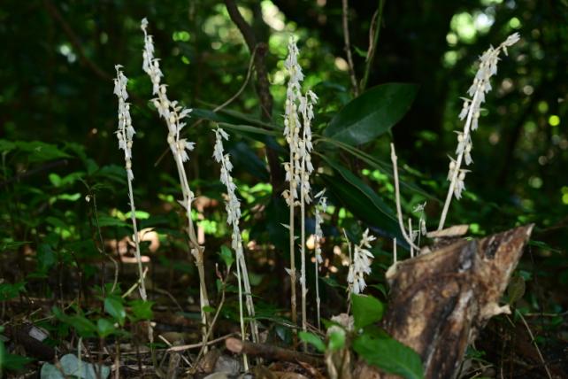 À̹ø¿¡ óÀ½ È®ÀÎµÈ ½Ä¹°Àº Epipogium roseum (D. Don.) Lindl.·Î, °¡Äª ¡®¹æ¿ïÀ¯·É¶õ¡¯ÀÌ´Ù. ÀÌ ½Ä¹°Àº ¿±·Ï¼Ò°¡ ¾ø´Â ºÎ»ý½Ä¹°·Î, Áö»óºÎÀÇ »ýÀ° ±â°£ÀÌ Âª´Ù´Â Á¡ µî¿¡¼ À¯·É¶õ(E. aphyllum Sw.)°ú À¯»çÇÏ´Ù. ±×·¯³ª »Ñ¸®ÁٱⰡ µ¢¾î¸® ¸ð¾çÀ̰í, ÀÙ¼ú²ÉÀÙÀÌ ´ë°³ ¾Æ·¡ÂÊ¿¡ ÀÖ¾î À¯·É¶õ°ú ±¸º°µÈ´Ù.
