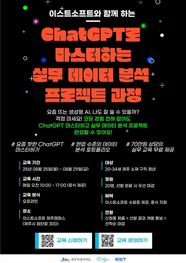 À̹ø ÇÁ·Î±×·¥Àº ÄÚµù °æÇèÀÌ ¾ø´Â û³âµµ ChatGPT¸¸ ÀÖÀ¸¸é ½±°Ô µû¶óÇÒ ¼ö ÀÖµµ·Ï ±¸¼ºµÆÀ¸¸ç, 5Àϰ£ÀÇ ÁýÁß ±³À°À» ÅëÇØ Ãë¾÷ ÇöÀå¿¡¼ Ȱ¿ë °¡´ÉÇÑ µ¥ÀÌÅÍ ºÐ¼® Æ÷Æ®Æú¸®¿À¸¦ Á÷Á¢ ¿Ï¼ºÇÒ ¼ö ÀÖ´Ù.