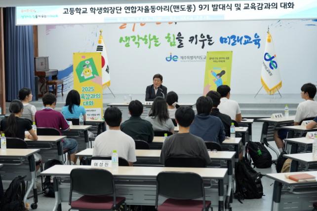ÇÑÆí Áö³ 5ÀÏ ±è±¤¼ö ±³À°°¨Àº Á¦ÁÖ¿À¸®¿£Å»È£ÅÚ¿¡¼ Á¦Áֽà ÁßÇб³ Çлý ´ëÇ¥ 30¸í°ú ÇÔ²² ¡®ÇູÇÑ Çб³»ýȰÀ» À§ÇÑ ´ëÈ¡¯¿¡ Âü¼®ÇØ ÇлýµéÀÇ Á¦¾ÈÀ» µè°í ÇлýÀÚġȸ ¿î¿µ »ç·Ê¿Í Á¤º¸¸¦ °øÀ¯ÇÏ¸ç ¼ÒÅëÇÏ´Â ½Ã°£À» °¡Á³´Ù.