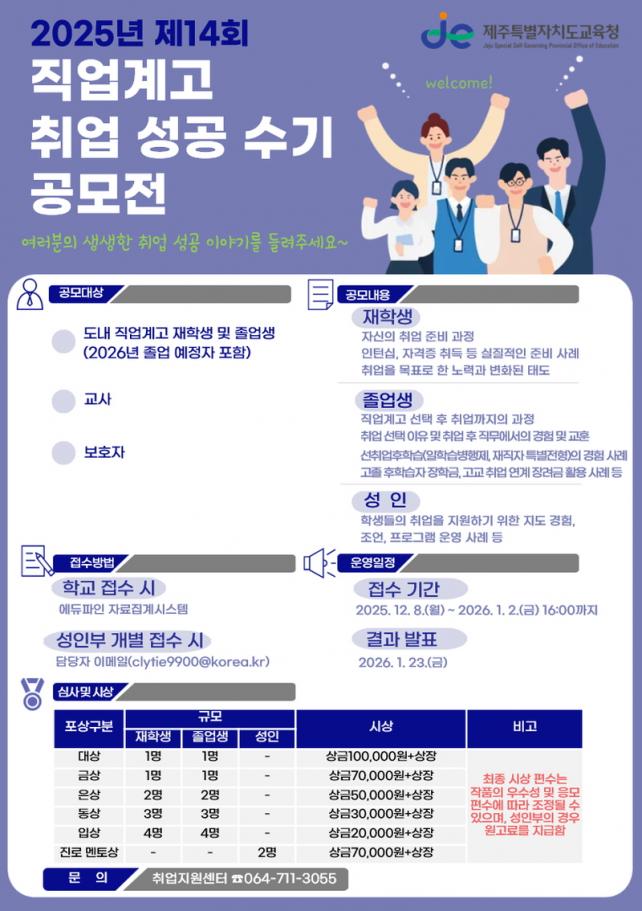 °ø¸ð¿Í °ü·ÃµÈ ÀÚ¼¼ÇÑ »çÇ×Àº Á¦ÁÖÆ¯º°ÀÚÄ¡µµ±³À°Ã» Ãë¾÷Áö¿ø¼¾ÅÍ(064-711-3055)·Î ¹®ÀÇÇÏ¸é µÈ´Ù.