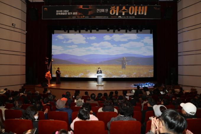 ¡®Àü¼³ÀÌ µÈ Çã¼ö¾Æºñ¡¯´Â °íÈﱺ Àü¼Ó¿¹¼ú´ÜÀÌ ÀÚü ±âȹÇÑ Ã¢ÀÛ °ø¿¬À¸·Î, ¿¹Àε¿ ÃѰý°¨µ¶ÀÌ ±âȹÀ» ¸Ã°í, ½ÉÇöÁ¤ ¹«¿ë´Ü ÁöµµÀÚ°¡ ¾È¹«¸¦ Á¦ÀÛÇßÀ¸¸ç, °íÈﱺ Àü¼Ó¿¹¼ú´Ü¿ø 17¸í°ú °íÈﱺ¹Î 12¸í, ¹Ú¹Ì° µî 6¸íÀÇ ¿¬ÁÖÀÚ¿Í ±èº¸¶÷ ÀÛ°î°¡ µîÀÌ ÇÔ²²ÇØ ¿Ï¼ºµµ ³ôÀº ¹«´ë¸¦ ¼±º¸¿´´Ù.