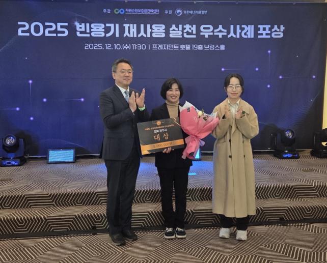 ÀüÁֽô ¿ÃÇØ ÀÚ¿ø¼øÈ¯º¸Áõ±Ý°ü¸®¼¾ÅͰ¡ ÁÖ°üÇÑ ¡®2025³âµµ Á¦3ȸ ºó¿ë±â Àç»ç¿ë ½Çõ ¿ì¼ö»ç·Ê Æò°¡¡¯¿¡¼­ ÁöÀÚü ºÎ¹® ¡®´ë»ó¡¯¿¡ ¼±Á¤µÆ´Ù°í 11ÀÏ ¹àÇû´Ù. ½Ã»ó½ÄÀº Áö³­ 10ÀÏ ¼­¿ï ÇÁ·¹Áö´øÆ®È£ÅÚ¿¡¼­ ¿­·ÈÀ¸¸ç, ½Ã´Â ´ë»ó ¼ö»ó°ú ÇÔ²² 500¸¸ ¿øÀÇ Æ÷»ó±ÝÀ» ¹Þ¾Ò´Ù.