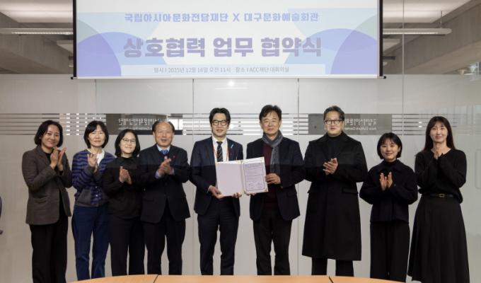 ±è¸í±Ô ±¹¸³¾Æ½Ã¾Æ¹®ÈÀü´çÀç´Ü »çÀåÀº ¡°´ë±¸¹®È¿¹¼úȸ°ü°ú ÀÇ¹Ì ÀÖ´Â ¾÷¹« ±³·ù¸¦ ÅëÇØ ±¹¸³¾Æ½Ã¾Æ¹®ÈÀü´ç ÄÜÅÙ¤º À¯ÅëÀ» È®»êÇϰڴÙ.¡±¶ó¸ç ¡°À̹ø Çù¾àÀ» °è±â·Î Àü±¹ÀÇ ´Ù¾çÇÑ ¹®È¿¹¼ú±â°ü°úÀÇ Çù·Â ±â¹ÝÀ» Áö¼ÓÀûÀ¸·Î È®´ëÇØ Áö¿ª ¹®È¿¹¼ú »ó»ý Çù·Â ¸ðµ¨À» ±¸ÃàÇÒ °èȹÀÌ´Ù.¡±¶ó°í ¹àÇû´Ù.