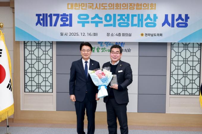[½Ã»çÁ¾ÇսŹ® = ¿À½ÂÅà ±âÀÚ] Àü¶ó³²µµÀÇȸ ¾ÈÀü°Ç¼³¼Ò¹æÀ§¿øÈ¸ ¹ÚÁ¾¿ø ÀÇ¿ø(´õºÒ¾î¹ÎÁִ硤´ã¾ç1)ÀÌ Áö³­ 16ÀÏ, ´ëÇѹα¹½ÃµµÀÇȸÀÇÀåÇùÀÇȸ°¡ ÁÖ°üÇÏ´Â ¡®Á¦17ȸ ¿ì¼öÀÇÁ¤´ë»ó¡¯ ¼ö»óÀÚ·Î ¼±Á¤µÇ´Â ¿µ¿¹¸¦ ¾È¾Ò´Ù.