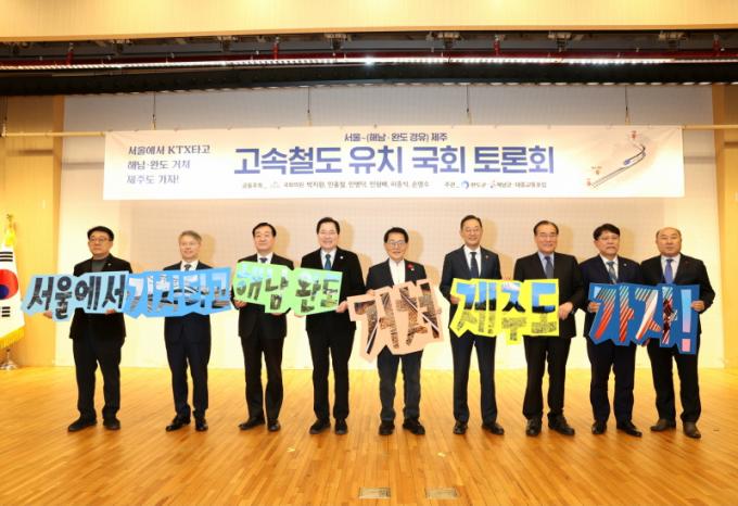 À̹ø Åä·Ðȸ´Â ¼­¿ï~Á¦ÁÖ °í¼Óöµµ »ç¾÷À» Á¦5Â÷ ±¹°¡Ã¶µµ¸Á ±¸Ãà°èȹ¿¡ ¹Ý¿µÇϱâ À§ÇÑ ±¹¹Î °ø°¨´ë Çü¼ºÀ» À§ÇØ ¸¶·ÃµÆ´Ù. ÇØ³²¡¤¿Ïµµ¡¤Áøµµ Áö¿ª±¸ ¹ÚÁö¿ø ±¹È¸ÀÇ¿øÀ» ºñ·ÔÇØ ¹Îȫö, ¹Îº´´ö, ¹ÎÇü¹è, ÇãÁ¾½Ä, ¼Õ¸í¼ö ÀÇ¿øÀÌ °øµ¿ ÁÖÃÖÇϰí, ÇØ³²±º, ¿Ïµµ±º, ´ëÁß±³ÅëÆ÷·³ÀÌ °øµ¿ ÁÖ°üÇß´Ù.