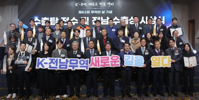 Àü³² ¼öÃâ È®´ë¿¡ ±â¿©ÇÑ ±â¾÷°ú À¯°øÀÚ¸¦ ´ë»óÀ¸·Î ÇÑ Àü³² ¼öÃâ»ó¿¡´Â ÃÑ 7°³ ¼öÃâ±â¾÷°ú 1°³ ÇØ¿Ü ¼öÀÔ±â¾÷, 7¸íÀÇ À¯°øÀÚ°¡ ¼±Á¤µÆ´Ù. ´ë»óÀº ¢ß¹Ù´Ù¸í°¡°¡ ¼ö»óÇßÀ¸¸ç, ¿ì¼ö»óÀº ¢ßÇØ½Å°ú ¢ß»ï¿µºñ¾Ø¿¡ÇÁ, Àå·Á»óÀº (À¯)Çϳª¹°»ê, ¸ÅÀϽÄǰ¢ß, ¾î¾÷ȸ»ç¹ýÀÎ ¢ßÈñ¸Á±è, ÇüÁ¦¼ö»ê¿µ¾îÁ¶ÇÕ¹ýÀÎÀÌ ¹Þ¾Ò´Ù. ÀÌ¿Í ÇÔ²² ÇØ¿Ü ¹ÙÀÌ¾î ±â°ü¿¡ °¨»çÆÐ¸¦ Àü´ÞÇØ Àü³² ¼öÃâ ³×Æ®¿öÅ© È®´ë¿¡ ±â¿©ÇÑ °ø·Î¸¦ ±â·È´Ù.