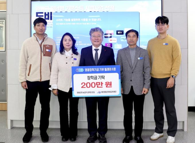 ¿µ±¤±ºÃ» ³ó¾÷Á÷ °ø¹«¿ø ¸ðÀÓÀº ¿µ±¤ÀåÇбâ±Ý ±âºÎ ¸±·¹ÀÌ 6È£·Î ÀåÇÐ±Ý 200¸¸ ¿øÀ» ±âŹÇß´Ù. ÀÌ±Ý¾È ³ó¾÷À¯Åë°úÀåÀº ¡°¿µ±¤±º ³ó¾÷À» Ã¥ÀÓÁö´Â °øÁ÷Àڷμ ¿µ±¤ÀÇ ¹Ì·¡¸¦ À̲ø ÀÎÀç À°¼º¿¡ ÇÔ²²ÇÏ°í ½Í¾ú´Ù¡±¶ó¸ç ¡°ÀÛÀº Á¤¼ºÀÌÁö¸¸ ÇлýµéÀÌ ²ÞÀ» Ű¿ö ³ª°¡´Â µ¥ º¸ÅÆÀÌ µÇ±â¸¦ ¹Ù¶õ´Ù¡±¶ó°í ÀüÇß´Ù.