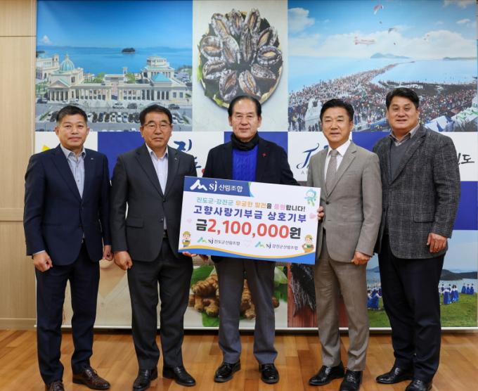 [½Ã»çÁ¾ÇսŹ® = ¿À½ÂÅà ±âÀÚ] Áøµµ±º»ê¸²Á¶ÇÕ°ú °­Áø±º»ê¸²Á¶ÇÕÀº ÃÖ±Ù Áøµµ±ºÃ»À» ¹æ¹®ÇØ °íÇâ»ç¶û±âºÎ±Ý 210¸¸ ¿øÀ» Àü´ÞÇϸç, Áö¿ª °£ »ó»ý Çù·ÂÀÇ ¶æÀ» ÇÔ²²Çß´Ù.