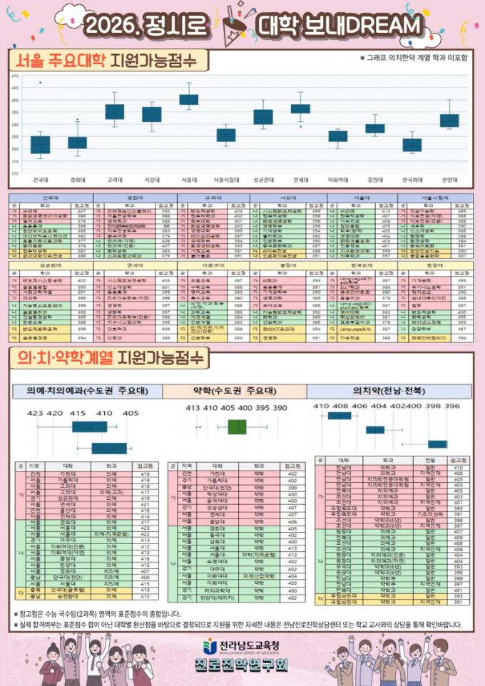 ¡®Ç¥ÁØÁ¡¼ö Á¤½Ã·Î ´ëÇÐ º¸³»DREAM¡¯Àº 2026Çг⵵ ¼ö´É ½ÇäÁ¡ ºÐ¼® °á°ú¿Í ±×µ¿¾È ÃàÀûµÈ Áø·ÎÁøÇבּ¸È¸ ¿¬±¸ ÀڷḦ ¹ÙÅÁÀ¸·Î Åë°è ºÐ¼®À» ½Ç½ÃÇØ, ÁÖ¿ä ´ëÇÐ ¹× °è¿º° Á¤½ÃÀüÇü¿¡¼ÀÇ Áö¿ø °¡´É ¿¹»ó Ç¥ÁØÁ¡¼ö¸¦ Á¦½ÃÇÑ ÀÚ·á´Ù.