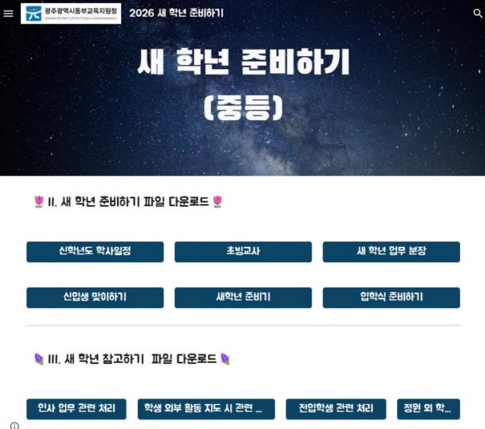 [½Ã»çÁ¾ÇսŹ® = ¿À½ÂÅà ±âÀÚ] ±¤ÁÖ±¤¿ª½Ãµ¿ºÎ±³À°Áö¿øÃ»(ÀÌÇÏ ±¤ÁÖµ¿ºÎ±³À°Áö¿øÃ»)°¡ Áö³­ 19ÀÏ °ü³» Áß¡¤°í¡¤Æ¯¼öÇб³¿¡ ¡®»õ Çгâ ÁغñÇϱâ ÅëÇÕ ÇàÁ¤ ÀÚ·á(ÀÌÇÏ »õ Çгâ ÁغñÇϱâ)¡¯¸¦ ¹èÆ÷Çß´Ù.