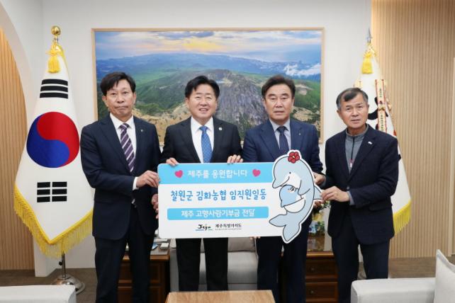 Á¦ÁÖÆ¯º°ÀÚÄ¡µµ´Â ±èȳóÇù(Á¶ÇÕÀå ÀåÃáÁý)ÀÌ 19ÀÏ ¿ÀÈÄ 5½Ã 30ºÐ µµÃ»À» ¹æ¹®ÇØ ¿À¿µÈÆ Áö»ç¿Í ¸é´ãÇϰí Á¦ÁÖ °íÇâ»ç¶û±âºÎ±ÝÀ» ±âŹÇÒ ¿¹Á¤À̶ó°í ¹àÇû´Ù.
