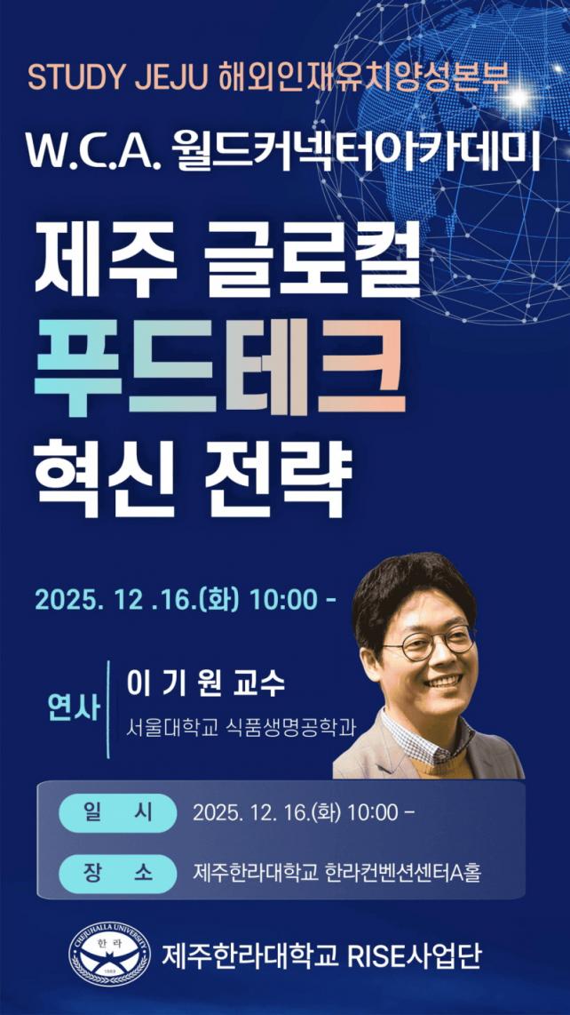[½Ã»çÁ¾ÇսŹ® = °í¼º¹Î ±âÀÚ] Á¦ÁÖÇѶó´ëÇб³(ÃÑÀå ±è¼ºÈÆ) ¶óÀÌÁî(RISE)»ç¾÷ STUDY JEJU ÇØ¿ÜÀÎÀçÀ¯Ä¡¡¤¾ç¼ºº»ºÎ(º»ºÎÀå ½ÅÀǰæ)´Â 12¿ù 16ÀÏ(È­) ¿ÀÀü 10½Ã, Á¦ÁÖÇѶó´ëÇб³¿¡¼­ ¡®¿ùµå Ä¿³ØÅÍ ¾ÆÄ«µ¥¹Ì(World Connector Academy)¡¯ 2ȸÂ÷ Ư°­À» °³ÃÖÇß´Ù°í ¹àÇû´Ù.