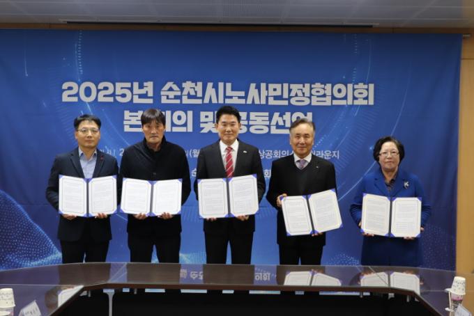 À̳¯ ÇùÀÇȸ¿¡´Â ¼øÃµ½ÃÀåÀ» ºñ·ÔÇØ ³ëµ¿°è, °æ¿µÀÚ´Üü, ½Ã¹Î´Üü µî 30¿© ¸íÀÌ Âü¿©ÇØ ÇÑÇØ ¼º°ú¸¦ °øÀ¯Çϰí, ¡®°í¿ë¾ÈÁ¤ ¹× Áö¼Ó°¡´ÉÇÑ »ê¾÷»ýÅÂ°è ±¸ÃàÀ» À§ÇÑ ³ë¡¤»ç¡¤¹Î¡¤Á¤ °øµ¿¼±¾ð¡¯À» äÅÃÇß´Ù.