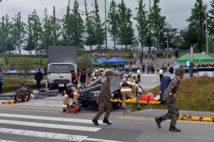 ³²±¸´Â Áö³­ 10¿ù 20ÀÏ Ä¥¼®µ¿ °í½Î¿ò³îÀÌ Àü¼ö±³À°°ü¿¡¼­ ±ººÎ´ë¿Í °æÂû, ¼Ò¹æ¼­, º´¿ø, Çѱ¹Àü·Â µî °ü°è±â°ü 15°÷°ú ÇÔ²² ÁöÁø°ú ºØ±«, È­Àç µîÀ» µ¿¹ÝÇÑ º¹ÇÕÀç³­ ¹ß»ý ½Ã³ª¸®¿À¿¡ µû¸¥ ½ÇÀü°ú °°Àº ´ë±Ô¸ð ÇÕµ¿ÈÆ·ÃÀ» ½Ç½ÃÇØ ±ä±Þ ´ëÇÇ ¹× ºÎ»óÀÚ‧ÀÌÀç¹Î ±¸È£ Á¶Ä¡ µî Àç³­ »óȲº° ´ëÀÀÀ» ¿Ïº®ÇÏ°Ô ¼±º¸¿© Æò°¡À§¿øµéÀÇ È£ÆòÀ» À̲ø¾ú´Ù.