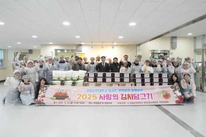 ±¹¸³¼øÃµ´ëÇб³ Á÷¿ø¿¬ÇÕȸ ¼ÇÑ±Û È¸ÀåÀº ¡°¸Å³â À̾î¿À´Â ¿¬¸» »ç¶ûÀÇ ±èÀå ³ª´® Çà»ç¿¡ ¿ÃÇØ´Â ¿Ü±¹ÀÎ À¯ÇлýµéÀÌ ÇÔ²²ÇØ ´õ¿í Àǹ̰¡ ±í¾ú´Ù¡±¶ó¸ç, ¡°Á÷¿ø°ú ÇлýµéÀÌ Á¤¼º²¯ ÁغñÇÑ ±èÄ¡¿Í ±¸È£ ¹°Ç°ÀÌ Ãß¿î °Ü¿ïÀ» ³ª´Â ¿ì¸®ÀÇ ÀÌ¿ôµé¿¡°Ô ÀÛÀº À§·Î¿Í µµ¿òÀÌ µÇ±â¸¦ ¹Ù¶õ´Ù¡±°í ¸»Çß´Ù.
