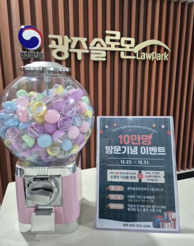 ±¤Áַּθó·ÎÆÄÅ©¿¡ µû¸£¸é ¿ÃÇØ 1¿ù 1ÀϺÎÅÍ 12¿ù 23ÀϱîÁö ±¤Áַּθó·ÎÆÄÅ©¸¦ ¹æ¹®ÇÑ ¹ýüÇè °ü¶÷°´ÀÌ 10¸¸ ¸íÀ» ³Ñ¾î À̸¦ ±â³äÇÏ¸é¼ ¿¬¸» ¹ýüÇè ±³À° Ȱ¼ºÈ ¹× ¹æ¹®°´ È®´ë¸¦ À§ÇØ Æ¯º°À̺¥Æ®¸¦ ½Ç½ÃÇϰí ÀÖ´Ù°í ÀüÇß´Ù.