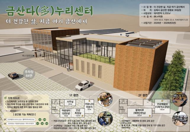 ½Ã´Â À̹ø »ç¾÷À» ÅëÇØ ÁÖ¹ÎÀÇ °Ç°­°ú Á¤¼­ º¹Áö¸¦ ÅëÇÕÀûÀ¸·Î Áö¿øÇÏ´Â ±âÃÊ ÀÎÇÁ¶ó¸¦ ±¸ÃàÇϱâ À§ÇØ ±Ý»ê¸é ¿øÆò·Î 35 ÀÏ¿ø(¿¾ ¿øÆò°ø¿ë¹ö½ºÅ͹̳Î)¿¡ ³»³âºÎÅÍ ¿À´Â 2028³â±îÁö 3³â°£ ÃÑ 88.4¾ï¿øÀ» ÅõÀÔÇØ Áö»ó 2Ãþ ±Ô¸ðÀÇ ±Ý»ê ´Ù(Òý)´©¸®¼¾Å͸¦ °Ç¸³ÇÒ ¿¹Á¤ÀÌ´Ù.