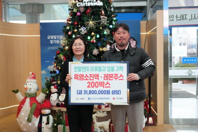 ³ªÁÖ½Ã(½ÃÀå À±º´ÅÂ)´Â ³ó¾÷ȸ»ç¹ýÀÎ ¢ß»õ·ÒÇѹæÁ¦¾à(´ëÇ¥ÀÌ»ç ¹Ú°æÇý)ÀÌ °ü³» »çȸº¹Áö½Ã¼³°ú Ãë¾à°èÃþ Áö¿øÀ» À§ÇØ Èæ¿°¼Ò Áø¾×°ú ·¹¸óÁÖ½º 200¼¼Æ®, 3180¸¸ ¿ø »ó´çÀÇ °Ç°½ÄǰÀ» ±âŹÇß´Ù°í 29ÀÏ ¹àÇû´Ù.
