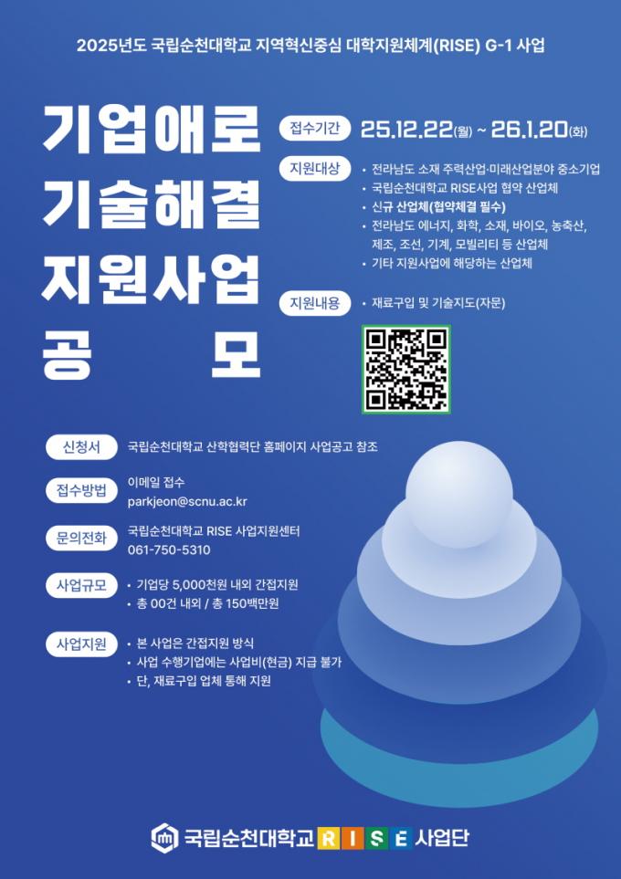 Áö¿ø ´ë»óÀº Àü¶ó³²µµ ¼ÒÀç Áַ»ê¾÷ ¹× ¹Ì·¡»ê¾÷ ºÐ¾ß Áß¼Ò±â¾÷À¸·Î, ¿¡³ÊÁö¡¤ÈÇС¤¼ÒÀ硤¹ÙÀÌ¿À¡¤³óÃà»ê¡¤Á¦Á¶¡¤Á¶¼±¡¤±â°è¡¤¸ðºô¸®Æ¼ µî ´Ù¾çÇÑ »ê¾÷ ºÐ¾ßÀÇ ±â¾÷ÀÌ Âü¿©ÇÒ ¼ö ÀÖ´Ù. ±¹¸³¼øÃµ´ëÇб³ RISE »ç¾÷ Çù¾à »ê¾÷ü´Â ¹°·Ð, ½Å±Ô »ê¾÷üµµ Çù¾à ü°áÀ» ÅëÇØ Âü¿©°¡ °¡´ÉÇÏ´Ù.3