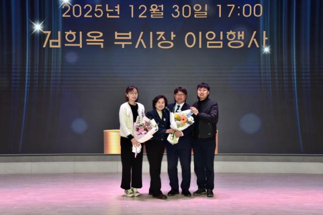 ±èÁ¦½Ã¸³ÇÕâ´ÜÀÇ °ø¿¬À¸·Î ½ÃÀÛÇÑ ÀÌÀÓ½ÄÀº ºÎ½ÃÀå Ȱµ¿ ¿µ»ó »ó¿µ°ú Á¤ ½ÃÀå ¹× ¼­ ÀÇÀåÀÇ °ø·ÎÆÐ ¼ö¿©¸¦ ºñ·ÔÇØ µ¿·á °ø¹«¿øµé°ú »çȸ´Üü µî °¢°è°¢Ãþ¿¡¼­ ÁغñÇÑ »óÆÐ¿Í ²É´Ù¹ß Àü´Þ½ÄÀ» °¡Á³´Ù.