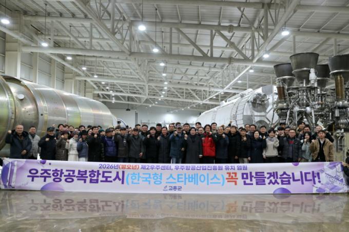 °ø¿µ¹Î ±º¼ö´Â ¡°³ª·Î¿ìÁÖ¼¾ÅÍ¿¡¼­ »õÇØ ±ºÁ¤À» ½ÃÀÛÇÏ´Â °ÍÀº °íÈïÀÌ ´ëÇѹα¹ ¿ìÁÖ»ê¾÷ÀÇ Áß½ÉÀÓÀ» ¼±¾ðÇÏ´Â »ó¡Àû Ãâ¹ß¡±À̶ó¸ç ¡°2026³â¿¡´Â Á¦2¿ìÁÖ¼¾ÅÍ¿Í ¿ìÁÖÇ×°ø»ê¾÷ÁøÈï¿ø À¯Ä¡, ¿ìÁÖÇ×°øº¹ÇÕµµ½Ã °Ç¼³ ±â¹Ý ¸¶·ÃÀ» Â÷Áú ¾øÀÌ ÃßÁøÇØ °íÈïÀ» ±¹°¡ ¿ìÁÖÀü·«ÀÇ ÇÙ½É °ÅÁ¡ÀÌÀÚ ¹Ì·¡Çü ¿ìÁÖµµ½Ã·Î µµ¾à½ÃŰ°Ú´Ù¡±°í ¸»Çß´Ù.