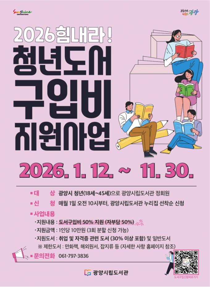 Áö¿ø ´ë»óÀº ±¤¾ç½Ã¿¡ °ÅÁÖÇÏ´Â 18¼¼ºÎÅÍ 45¼¼±îÁöÀÇ Ã»³âÀ¸·Î, 1Àδç ÃÖ´ë 10¸¸ ¿ø Çѵµ ³»¿¡¼ µµ¼±¸ÀÔºñÀÇ 50%(Àںδã 50%)¸¦ Áö¿øÇÑ´Ù. µµ¼ ½ÅûÀº ¿¬°£ 3ȸ±îÁö ³ª´² ½ÅûÇÒ ¼ö ÀÖÀ¸¸ç, ½Åû µµ¼ÀÇ 30% ÀÌ»óÀº Ãë¾÷․Áø·Î µµ¼·Î ±¸¼ºÇØ¾ß ÇÑ´Ù.