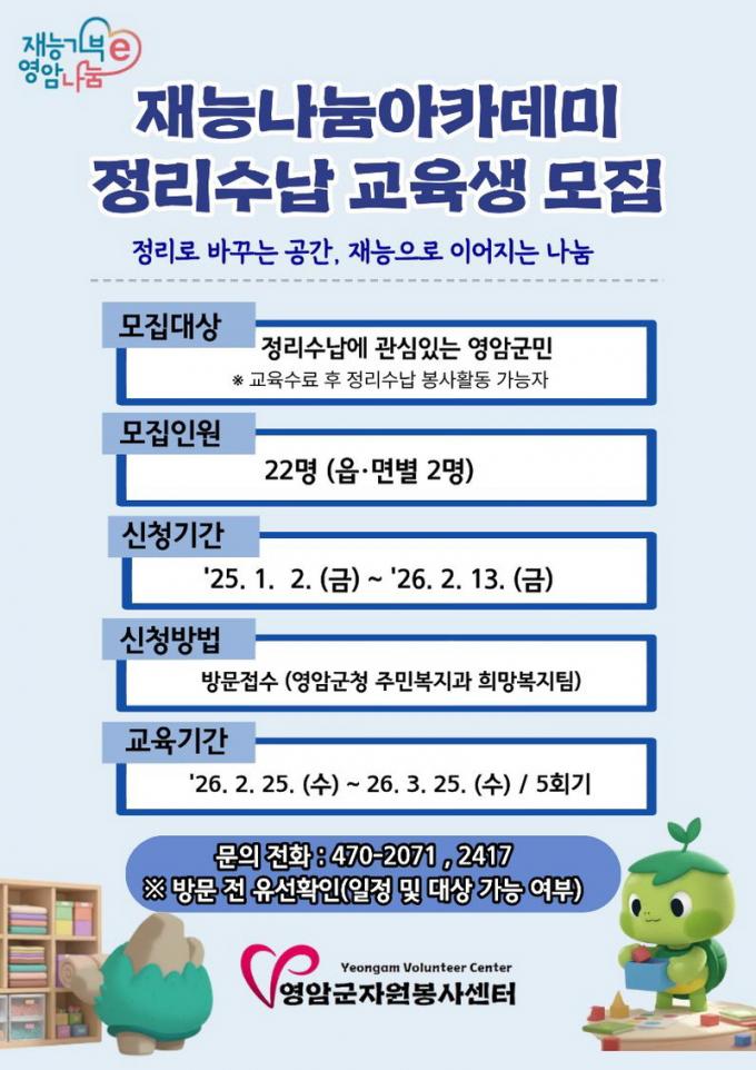 [½Ã»çÁ¾ÇսŹ® = ¿À½ÂÅà ±âÀÚ] ¿µ¾Ï±ºÀº ±º¹ÎÀÇ Àç´É±âºÎ ¿ª·®À» °ÈÇϰí Áö¿ª»çȸ µ¹º½À» È®´ëÇϱâ À§ÇØ ¡®2026³â Àç´É³ª´® ¾ÆÄ«µ¥¹Ì(Á¤¸®¼ö³³ °úÁ¤)¡¯Âü¿©ÀÚ¸¦ ¸ðÁýÇÑ´Ù.